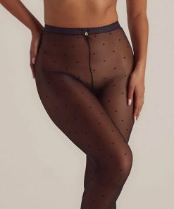 High-waisted tights with stretch waistband Polka-dot mesh details across tights