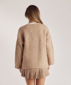 Alpaca yarn jacket Boxy, oversized fit Round-neck design Front pockets Gold engraved logo tab to pocket