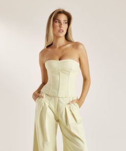 Three-piece cup Non-slip silicone elastic finish Boning channels to entire garment Brushed gold eyelets with logo engraving Traditional tie-up corset fastening to back Guard to back for full coverage |The Debut is a collection of tailored clothing designed to bring a flair of modernity to traditional shapes. Discover staple pieces that slot effortlessly into any wardrobe, with each piece crafted for quality, fit, and longevity. Lounge is now worn to be seen. The Bandeau Corset Top is a masterpiece in pastel. The traditional corsetry elements and lingerie-inspired cups make this a piece that transitions any wardrobe seamlessly from season to season.