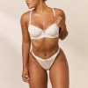 Underwired bra, no padding Satin fabrication paired with love heart embroidery Three-piece cup with cut out detail Ruched satin straps Rose gold L heart charm Hook and eye fastening Matching bra and g-string set Rose gold Lounge hardware 62% Polyester, 30% Recycled Polyester, 8% Elastane Capture timeless elegance with the Cherish Balcony Set. This beautiful style will hug your body with nothing but love and elegance, complete with sexy cutouts and love heart mesh panelling.