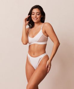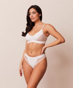 Lounge Women’s Contour Mesh Bra & Thong/briefs Set | White