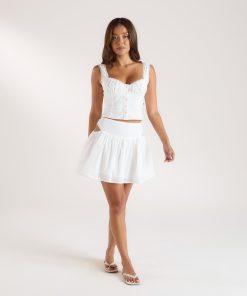 Corset-style top, no boning Ruched cup detailing Lace trim to neck edge and shoulder Broderie fabric with cotton lining Adjustable tie shoulder details Lace-up back detail Covered button fastenings to front Cinching panelling details throughout for a contoured effect |The Al Fresco Collection marks a new chapter for Lounge. Blurring the lines between clothing and Intimates, each piece reflects Lounge’s evolution from lingerie pioneer to modern fashion house, dedicated to celebrating the female form. The Corset Back Top, with its flattering ruched cups and luxurious broderie fabrication, belongs in every suitcase and every wardrobe this summer. Pair with the matching Broderie Mini Skirt for a perfect seasonal co-ord.