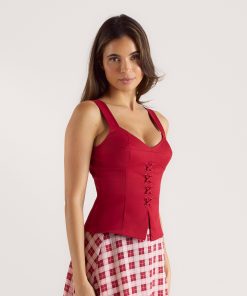 Fully-lined corset top Statement crossover detail to front with eyelets Front split creates a peplum-style silhouette Overbust seams Contoured cup shape to bust Invisible zip fastening to centre-back Hook and eye fastening to back |Get inspired by this curated style guide to create the perfect look|The British Garden Collection celebrates the best of British fashion design. Every piece in this collection pays homage to our roots in lingerie design, offering a whimsical take on trending shapes. Step into a new season with garments that blur the line between lingerie and clothing. This flattering corset top is fully lined for a supportive feel, with a contoured cup that allows for bra-free wear. The dainty front split creates a beautifully feminine hourglass silhouette, with added volume below the waistline.