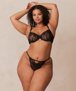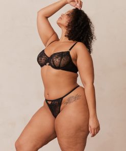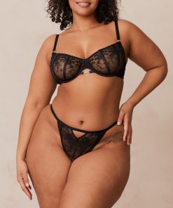 Lounge Women’s Flirt Balcony Bra & G-string/briefs Set | Black