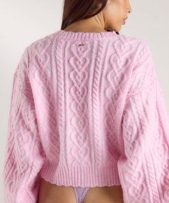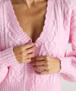 Cropped knitted cardigan with V neck Soft cable knit with heart detail Balloon sleeve detail Knitted ribbed cuffs, hems, and front opening, all with scallop edge Printed gingham button fastening Gold logo-engraved tab to centre-back neck |This breathtaking collection takes inspiration from the soft sunshine and effortless elegance of the French Riviera. The vibrant embroidery and flattering shapes will transport you there with every wear. This is La Vie en Lounge. The Heart Cable-Knit Cardigan, in soft pastel pink, brings the spirit and style of the French Riviera to your door. The balloon sleeves create a beautifully flattering shape that fits seamlessly into every transitional wardrobe.
