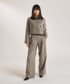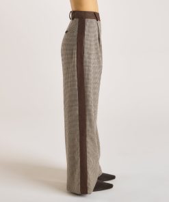 Wide-leg trousers Full-length suedette panelling to each leg Suedette crossover waistband Belt loops Invisible zip fastening to side Faux pocket to back with button detail Horn button with logo engraving |Get inspired by this curated style guide to create the perfect look|The Debut is a collection of tailored clothing designed to bring a flair of modernity to traditional shapes. Discover staple pieces that slot effortlessly into any wardrobe, with each piece crafted for quality, fit, and longevity. Lounge is now worn to be seen. u003c/bru003e Contour fashion makes way for high fashion with the introduction of the Houndstooth Pants. These beautifully wearable trousers showcase a mastery of considered craftsmanship, with subtle branding and accents that are still unmistakably Lounge.