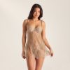 Underwired, non-padded basque with structured boning Eyelash lace embellishments throughout Decorative lace bow details Rigid lace fabrication for added structure Sparkle thread woven throughout Subtle cut-out details Kick-out design to create an hourglass silhouette Matching basque and thong set with adjustable straps Diamanté charm details Silver engraved hardware