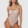 Non-wired, stretch mesh thong bodysuit Lemon embroidered stretch mesh with decorative picot elastic Cut-out detail to back with bow detail Adjustable Lounge shoulder straps Rose gold Lounge engraved hardware
