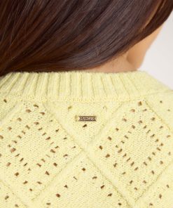 Cropped cardigan Chunky cotton pointelle knit with cable knit detail Floral embroidered motif Ribbed collar, centre-front opening Wide ribbed cuff and hem detail Marbled button fastening Gold logo-engraved tab to centre-back neck |This breathtaking collection takes inspiration from the soft sunshine and effortless elegance of the French Riviera. The vibrant embroidery and flattering shapes will transport you there with every wear. This is La Vie en Lounge. The Knitted Pointelle Cardigan, in soft sunshine yellow, brings the spirit and style of the French Riviera to your door. The marbled buttons and dainty gold hardware pair beautifully with the soft knit fabrication, creating an elevated piece that always prioritises comfort.