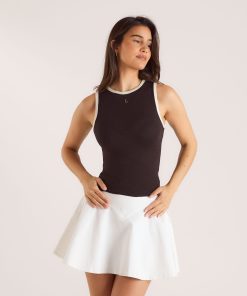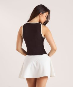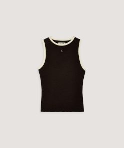 Knitted vest top Contrast-colour edge to neckline and arms Miniature gold ‘L’ logo branding to front-centre |Get inspired by this curated style guide to create the perfect look|The Dust and Daisies Collection celebrates unapologetic individuality and the art of self-expression. This collection of western-inspired clothing seamlessly blends oversized and fitted shapes, creating effortlessly flattering outfits.With a contrast-colour edging and a miniature gold pin, the Knitted Vest Top is an elevated staple. The sleeveless style is ideal for warmer days, while the knit fabrication makes it a perfectly transitional piece.