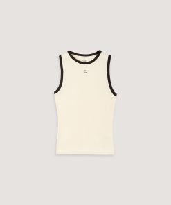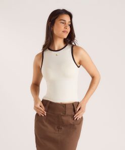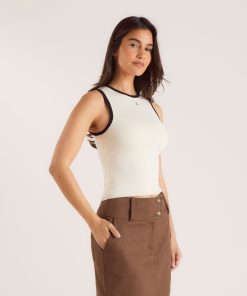 Knitted vest top Contrast-colour edge to neckline and arms Miniature gold ‘L’ logo branding to front-centre |The Dust and Daisies Collection celebrates unapologetic individuality and the art of self-expression. This collection of western-inspired clothing seamlessly blends oversized and fitted shapes, creating effortlessly flattering outfits.With a contrast-colour edging and a miniature gold pin, the Knitted Vest Top is an elevated staple. The sleeveless style is ideal for warmer days, while the knit fabrication makes it a perfectly transitional piece.