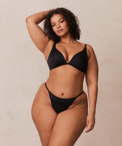 Be the first to review “Lounge Women’s Light Non-wire Plunge T-shirt Bra & Thong/briefs Set | Black” Cancel reply