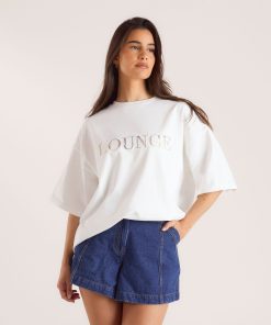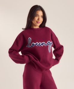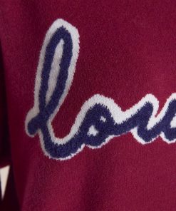 Oversized crew-neck jumper Ribbed detailing to neck, hem, and cuffs Contrast-colour logo with bouclé stitch border Soft knit fabrication