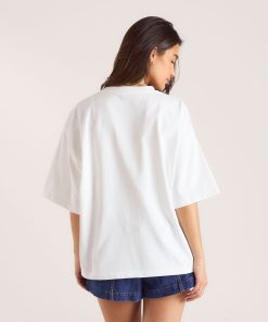 Oversized crew-neck jumper Ribbed detailing to neck, hem, and cuffs Contrast-colour logo with bouclé stitch border Soft knit fabrication