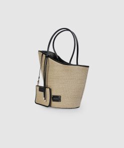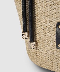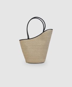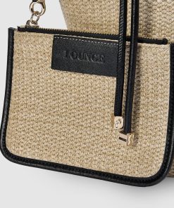 Asymmetric tote bag Combination of raffia and black leather fabrication Padded tubular handle Detachable internal zip pouch wtih branded tab Cream canvas interior Magnetic popper fastening Branded leather tab with stud detail and embosssed logo Moulded protective studs to base Hammered metal aglets with logo branding Protective cotton dust bag included |The Al Fresco Collection marks the debut of The Bag Collection – a considered extension of our signature style beyond the body. u003cbru003e Our first-ever bag collection blends Lounge’s signature intimacy with elevated, everyday function, offering refined silhouettes crafted for movement, ease, and expression. Designed to complement the fluid femininity of our ready-to-wear, each piece is a quiet statement: soft, structured, and endlessly wearable. This is Lounge, reimagined – worn your way, wherever the day takes you.