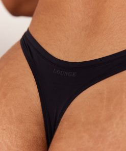 Soft-stretch material Semi-sheer fabrication Subtle silicone Lounge branding 78% recycled polyamide, 22% elastane Pair this thong with the Barely There Plunge Bra or Bralette for a seamlessly supportive look.