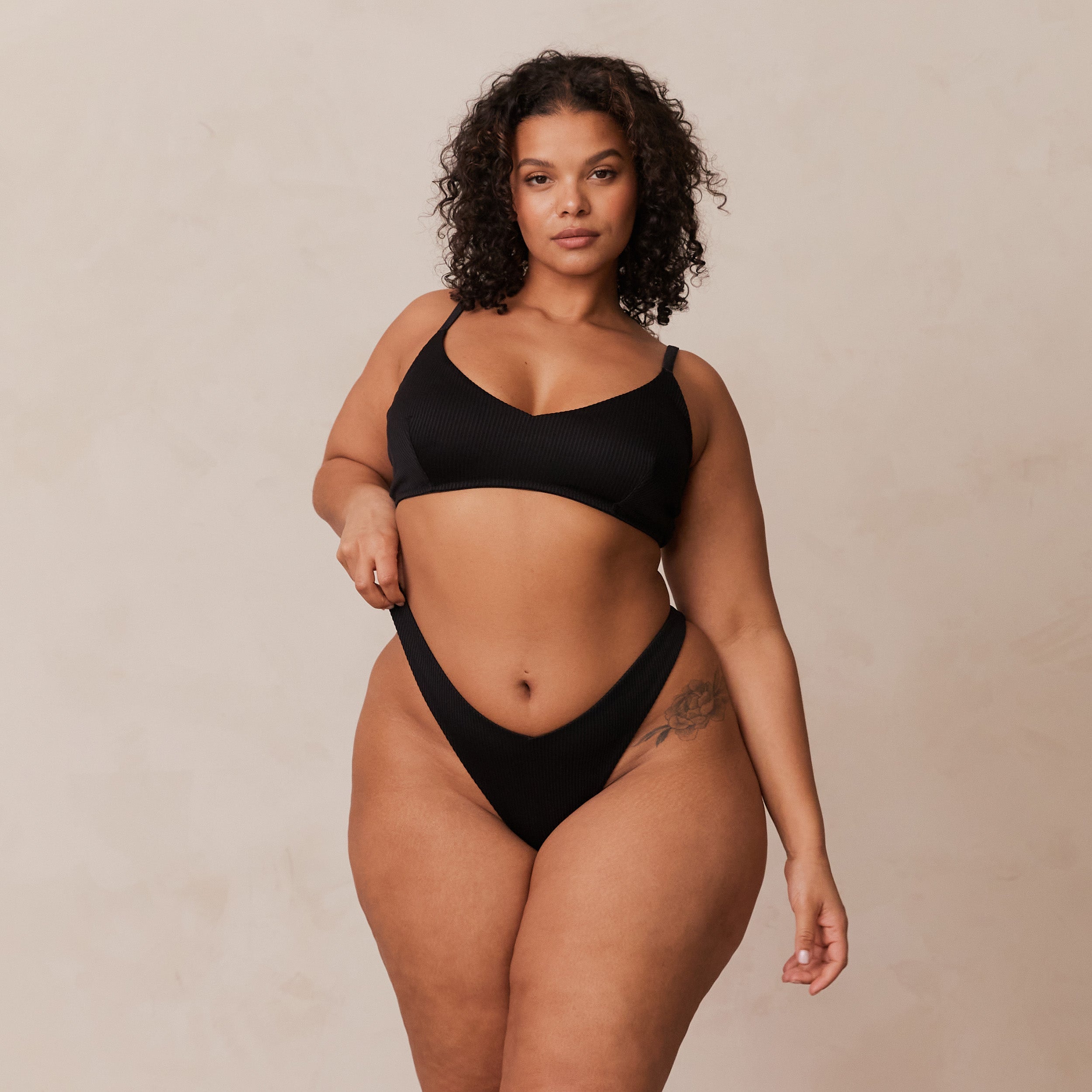Non-wired bralette, no padding Stretch ribbed fabrication, with soft modal lining Adjustable bra straps Lounge rubber badge Silver lounge hardware 91% Recycled Polyester, 9% Elastane Our Ribbed Triangle Set is perfect for everyday Lounging. With a soft ribbed fabric, this set is the endlessly comfy addition your underwear drawer needs.