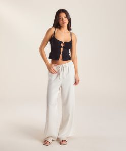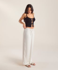 Low-rise, loose-fitting style Lightweight, soft satin fabrication Pocket Elasticated drawstring waist Elevate your evening outfits with these summery satin trousers. With an elasticated waist and relaxed fit, they create a beautifully flattering silhouette.