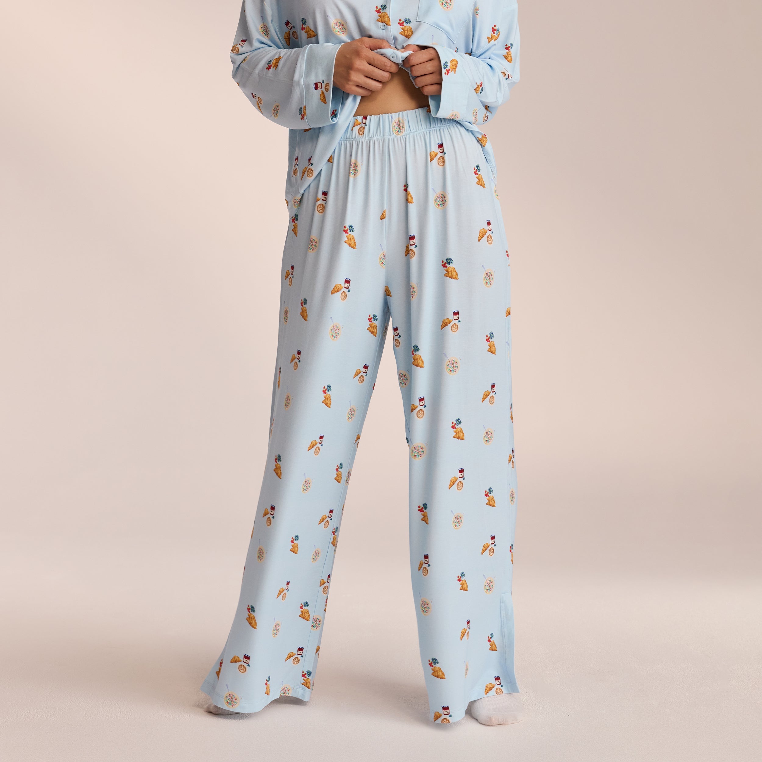 Ultra-soft Pajama pants made of smooth modal fabric Soft-stretch fabrication with hand-drawn print Small side slits to each ankle Woven tab with Lounge logo on side seam