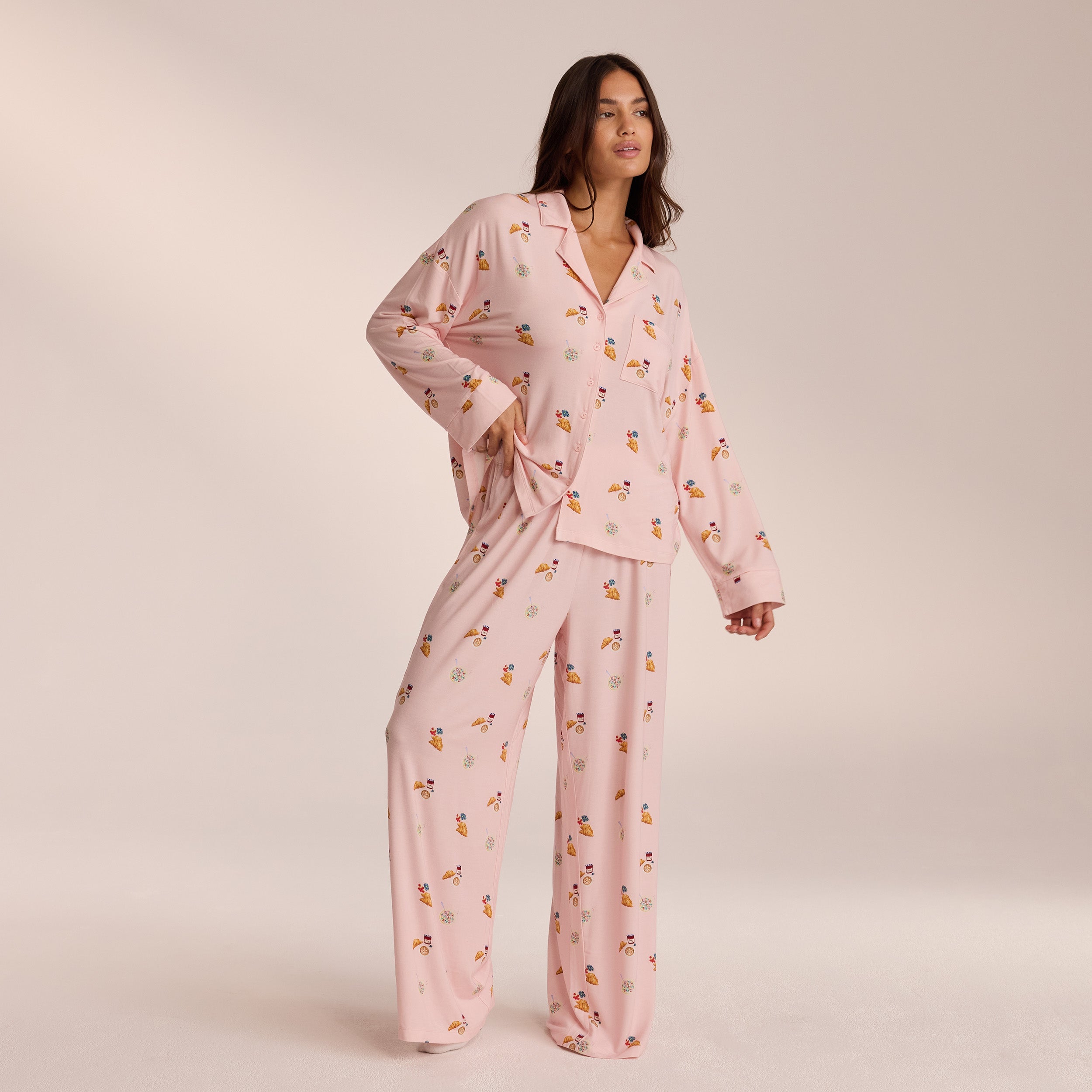 Ultra-soft Pajama pants made of smooth modal fabric Soft-stretch fabrication with hand-drawn print Small side slits to each ankle Woven tab with Lounge logo on side seam
