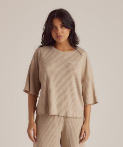 Lightweight oversized waffle fabrication with frilly edging Embroidered Lounge logo Add a touch of luxury to your nightly routine with this beautifully soft pajama top. The oversized fit and stretch of the fabric are guaranteed to give you the best night’s sleep of your life.
