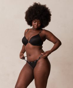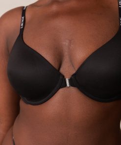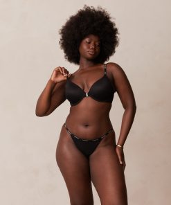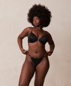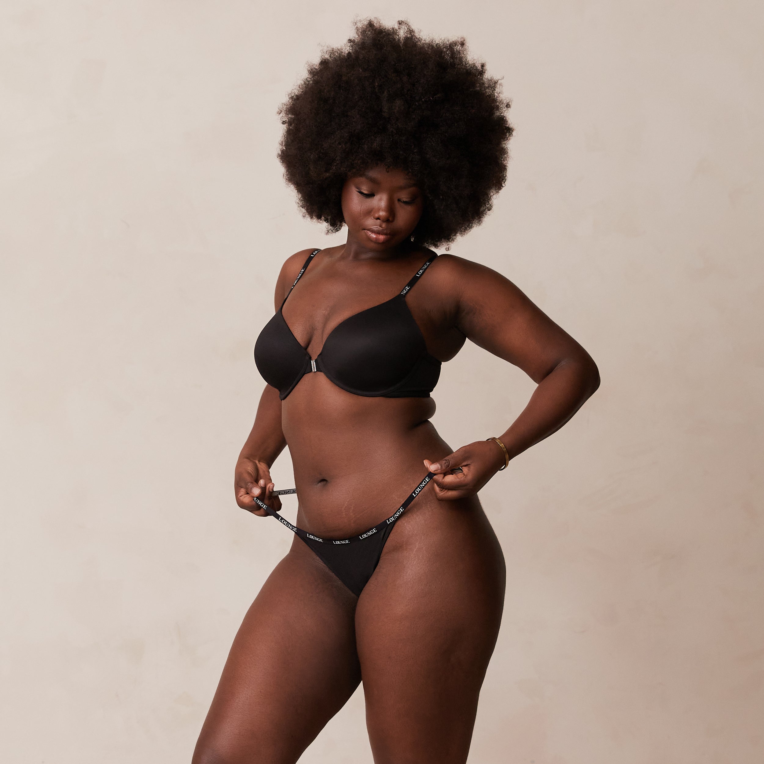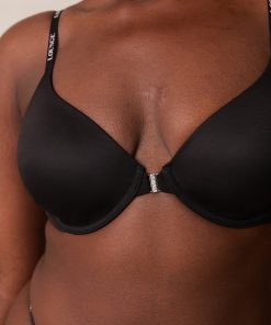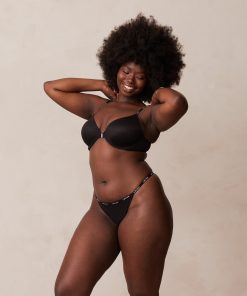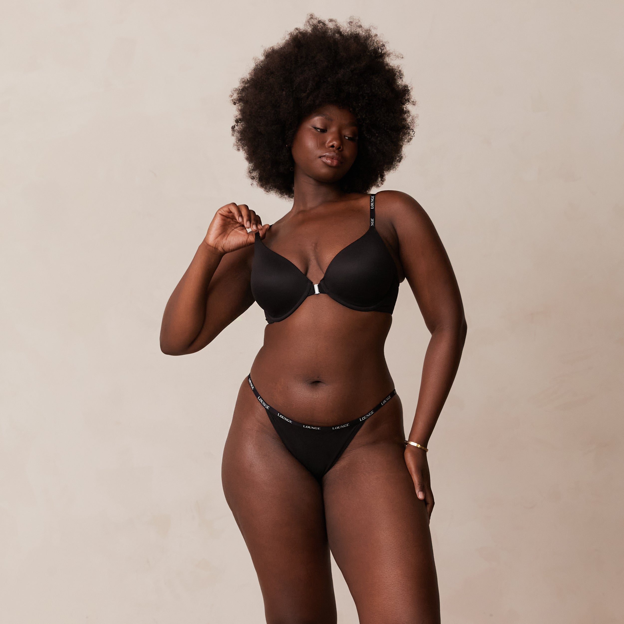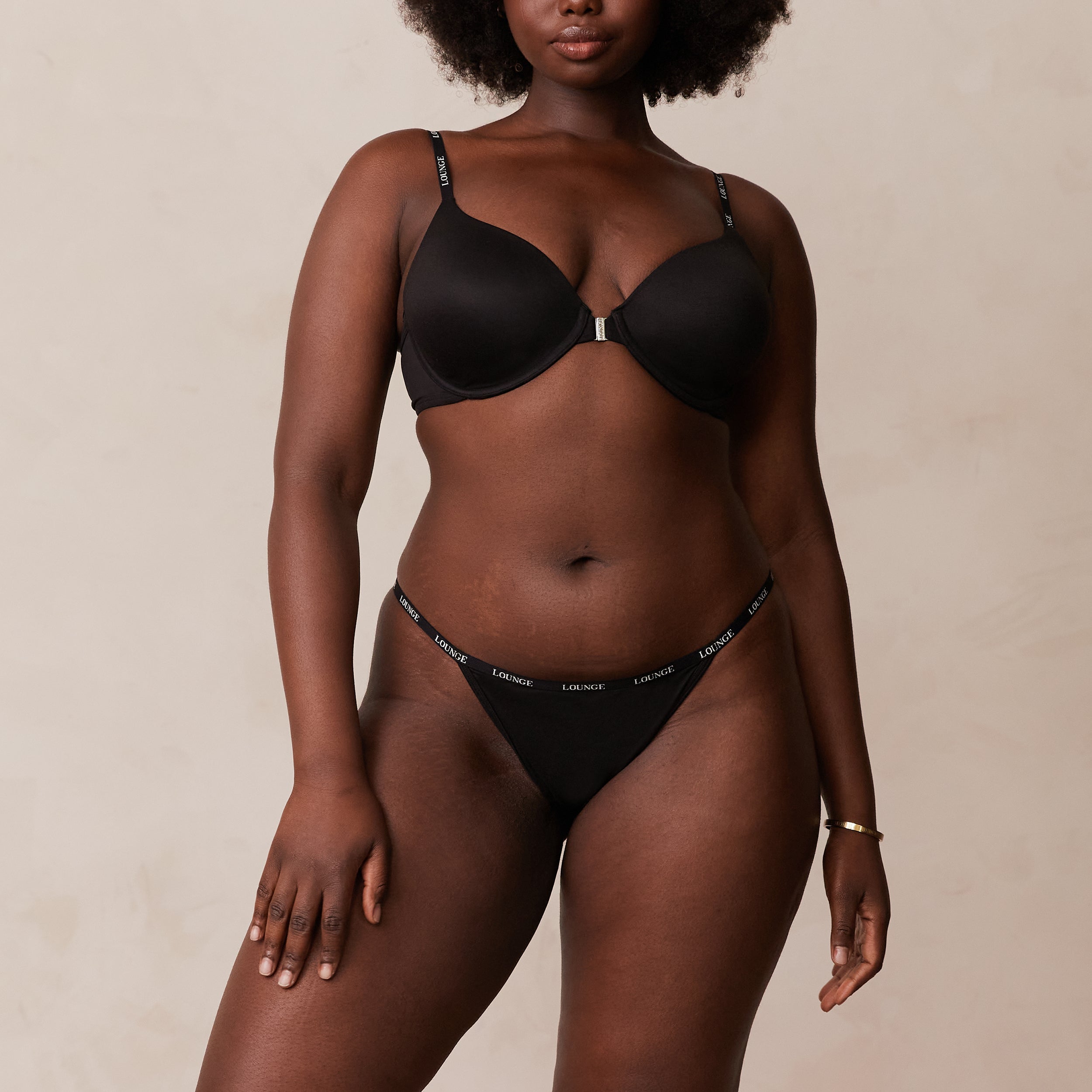 Lounge Women’s Smooth Front Fastening T-shirt Bra & Thong/briefs Set | Black