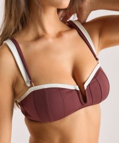 Thick, matte, sculpting fabrication Contrast-colour panelling Bone channel stitching details Internal boning for additional structure Moulded inner cup for additional support Detachable, adjustable straps Bespoke branded tie ends |The swimwear of the season: Monaco Swim. This collection of luxury swimwear redefines elegance. The Monaco Bandeau Bikini Top creates a sleek, refined silhouette in a timeless colour palette. The sculpting fabrics and exquisite detailing come together to create swimwear that transports its wearer to paradise.
