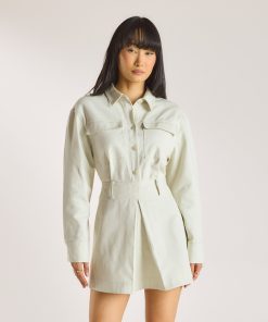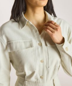 Cotton twill fabrication Traditional shirt-style sleeve with cuffs Pin tuck into cuffs Belted-look waist detail with belt loops 2 pockets to chest Button-down front Inverted box pleat to centre front Invisible zip fastening to side Collar detail Traditional yoke to back Pin tucks to back for a fitted waistline Horn buttons with logo engraving PU embossed logo patch to back |The Debut is a collection of tailored clothing designed to bring a flair of modernity to traditional shapes. Discover staple pieces that slot effortlessly into any wardrobe, with each piece crafted for quality, fit, and longevity. Lounge is now worn to be seen. u003c/bru003e Contour fashion makes way for high fashion with the introduction of the Utility Dress. This beautifully structured dress shows a mastery of considered craftsmanship, with subtle branding and accents that are still unmistakably Lounge.