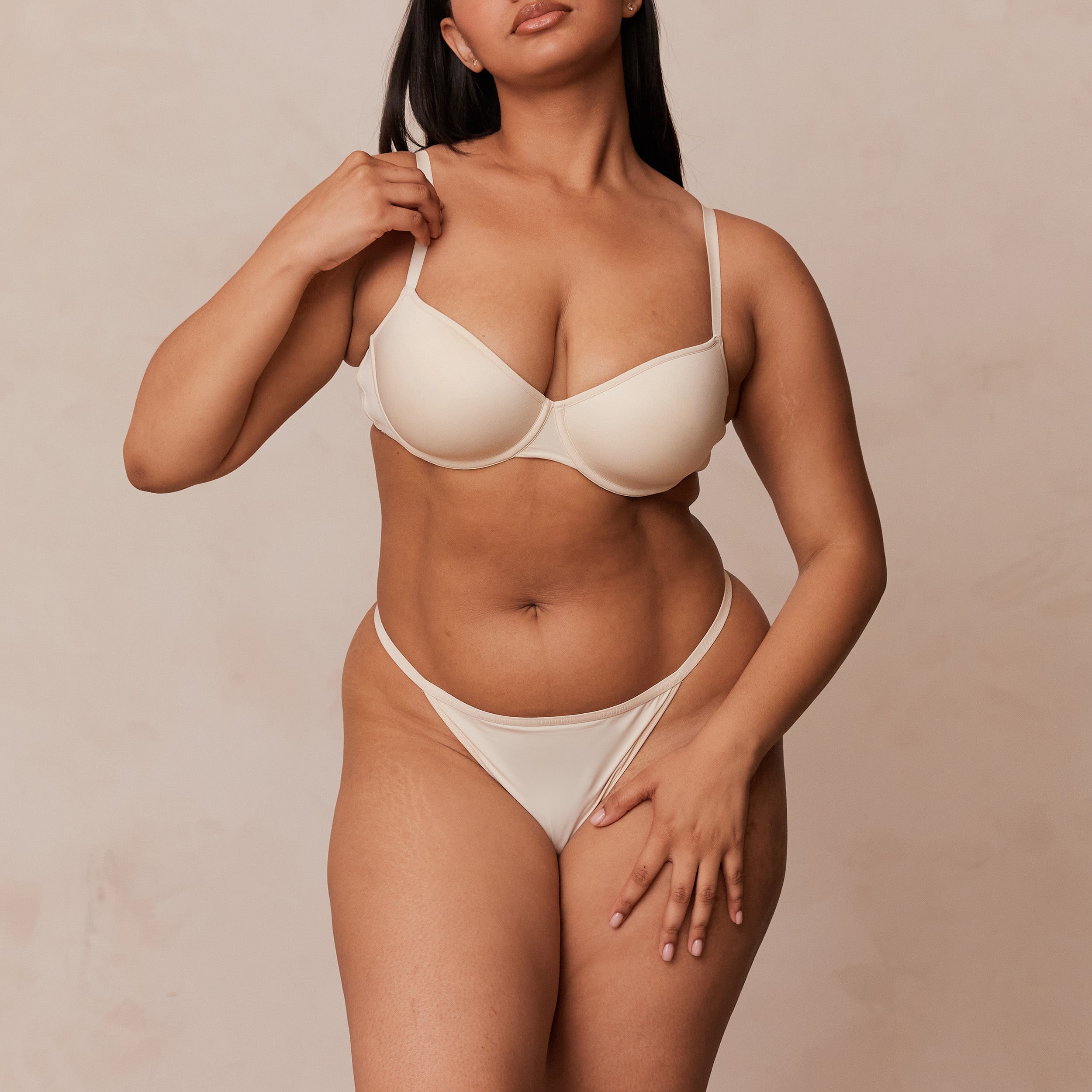Underwired bra with foam cups Smoothing shiny microfibre fabric Lounge embossed bra straps Padded hook and eye fastening Silver Lounge hardware 76% Recycled Polyamide, 24% Elastane Our Everyday T-Shirt Bra Set is designed to bring endless comfort and style into your everyday. Featuring a soft, smoothing fabric, foam cups and Lounge embossed straps, you’ll be Lounging in comfort all day, every day.